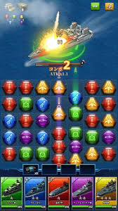 戦闘はマッチ3パズルで、消した位置の真上に攻撃できる。戦艦のスキルを使って敵艦隊を撃沈していこう。